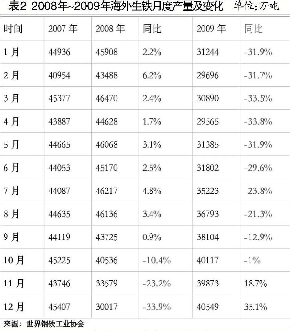 2009年,世界粗鋼產(chǎn)量同比減少8%,生鐵產(chǎn)量同比減少3%;